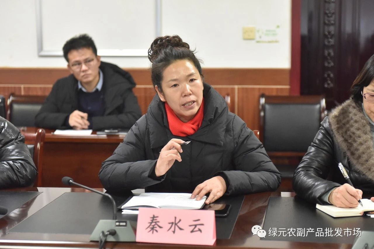 會(huì)上,張大虎副主任介紹了綠元市場(chǎng)情況。綠元農(nóng)副產(chǎn)品批發(fā)市場(chǎng),創(chuàng)建于2020年11月,是運(yùn)城經(jīng)濟(jì)技術(shù)開發(fā)區(qū)管委會(huì)主導(dǎo)、運(yùn)城經(jīng)濟(jì)技術(shù)開發(fā)區(qū)建設(shè)發(fā)展公司牽頭,隸屬運(yùn)城經(jīng)濟(jì)技術(shù)開發(fā)區(qū)鑫誠物業(yè)管理有限公司(國企)監(jiān)管的綠色農(nóng)副產(chǎn)品綜合批發(fā)市場(chǎng),是運(yùn)城市人民政府鼓勵(lì)扶持的“菜籃子”工程,是運(yùn)城經(jīng)濟(jì)技術(shù)開發(fā)區(qū)黨工委、管委會(huì)維護(hù)人民群眾切身利益、推動(dòng)經(jīng)濟(jì)發(fā)展和社會(huì)穩(wěn)定的重點(diǎn)建設(shè)項(xiàng)目。綠元市場(chǎng)位于空港南區(qū)的陶朱公街以南,柏園東街以北,星河商業(yè)街以東,裴相路以西。綠元市場(chǎng)占地面積265畝,建筑面積12.1萬平方米,商鋪5795戶,是集農(nóng)副產(chǎn)品物流交易集散中心、市場(chǎng)調(diào)控中心、質(zhì)量安全檢測(cè)中心等于一體的農(nóng)副產(chǎn)品物流配送基地。綠元市場(chǎng)一期投資1000萬元,涉及商鋪2727戶,建筑面積4.5萬平方米;設(shè)置“蔬菜、干貨、水產(chǎn)、肉食、糧油”五大功能區(qū)。